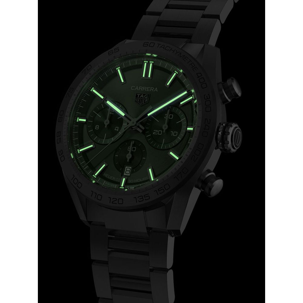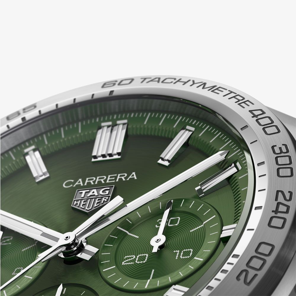 Part of the Motorsport collection, this stunning timepiece from Tag Heuer is perfect for everyday wear. Created in stainless steel, the piece features a vibrant green chronograph dial that is set with luminescent hour markers and hands. Powered by a Calibre Heuer 02 movement, the piece is finished with a stainless steel bracelet and a push deployment clasp fastening.