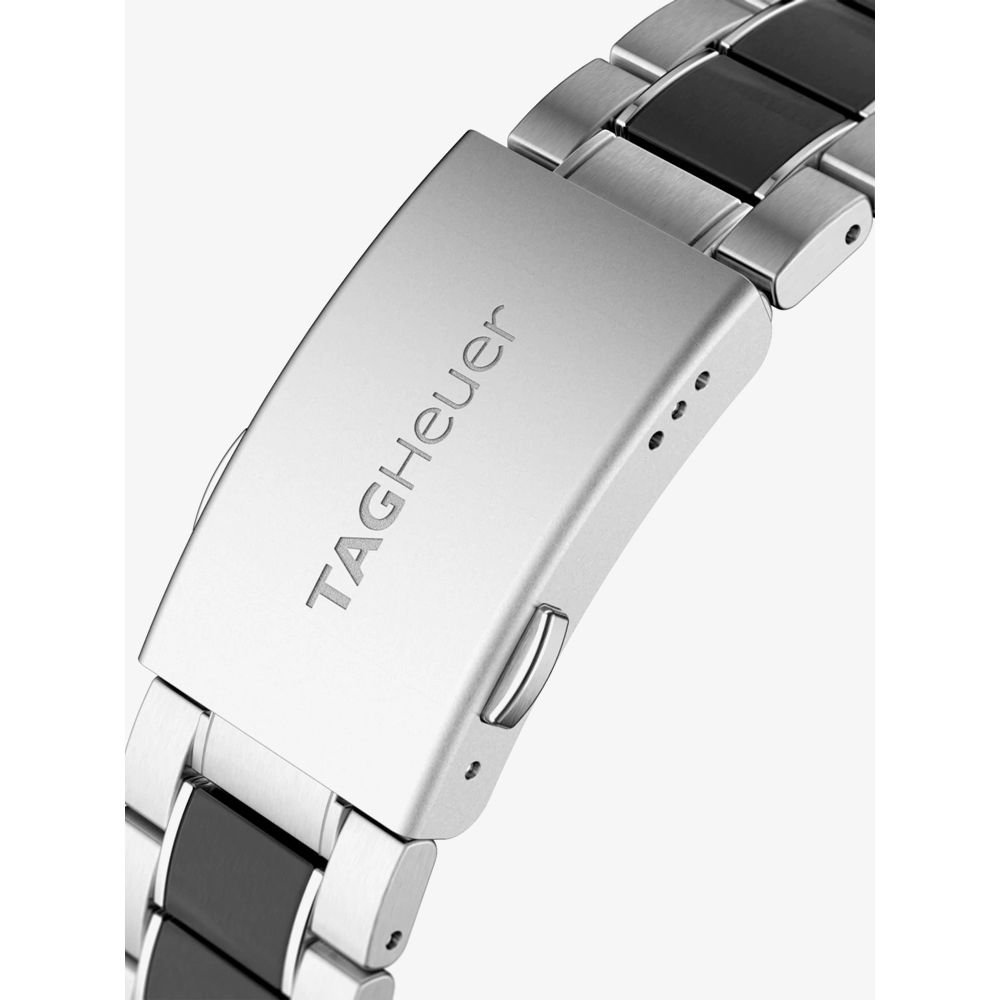 TAG Heuer have created this stunning timepiece, resident to their admirable Formula 1 collection, inspired by the brands infinite devotion to competitive motor racing. Crafted with an appealing two colour finish achieved by combining sumptuous stainless steel with smooth black ceramics, expressively matched by the anthracite grey and black chronograph dial with helpful date and tachymetre functions, scratch resistant sapphire crystal glass and iconic checkered flag embossed case back; all centrally directed by a Swiss quartz movement for absolute accuracy. Treat yourself to a piece of suave Swiss prestige today.