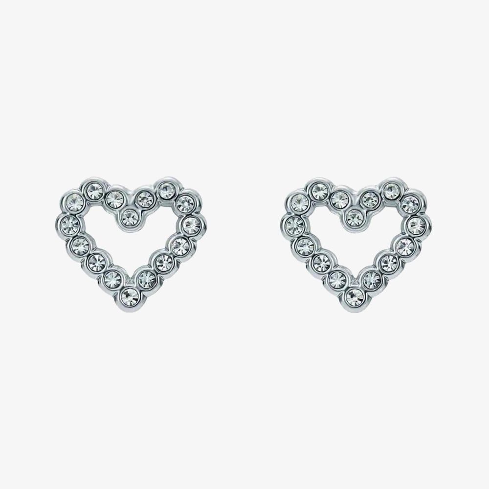 The Ted Baker Amorina Silver Tone Crystal Halo Heart Studs are elegant stud earrings featuring a silver-tone finish with sparkling crystal accents arranged in a halo around a heart shape. Perfect for adding a touch of romance and sophistication to any outfit, these delicate studs are versatile enough for both everyday wear and special occasions.