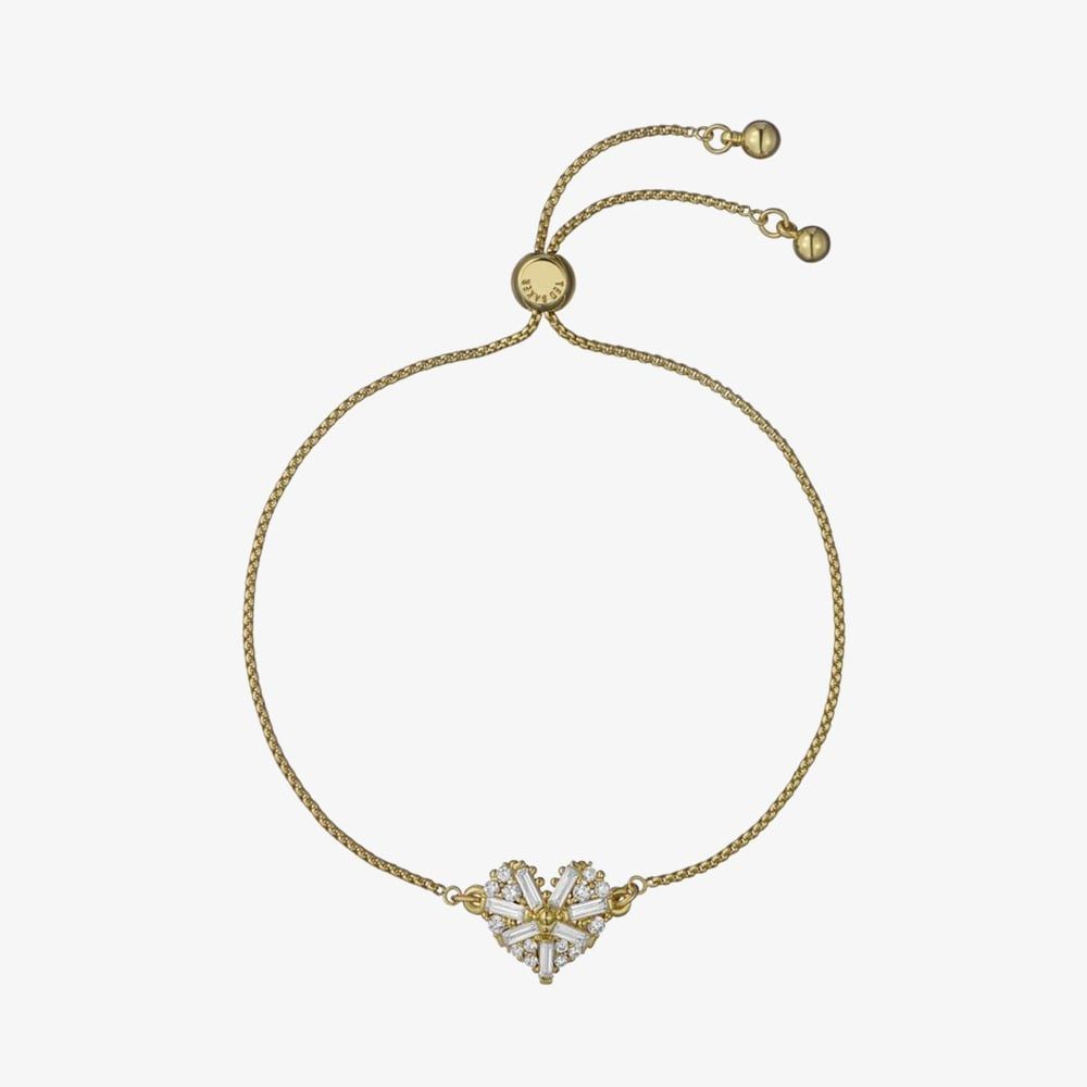 Elevate your look with the Ted Baker Cherisa Toggle Bracelet, crafted in a gold-tone finish and featuring a heart charm adorned with sparkling white crystals. The faceted design adds a hint of glamour, while the adjustable toggle clasp ensures a perfect fit. A timeless accessory that adds elegance to any outfit.