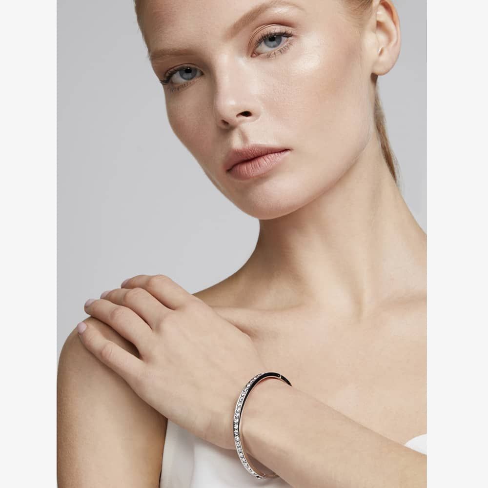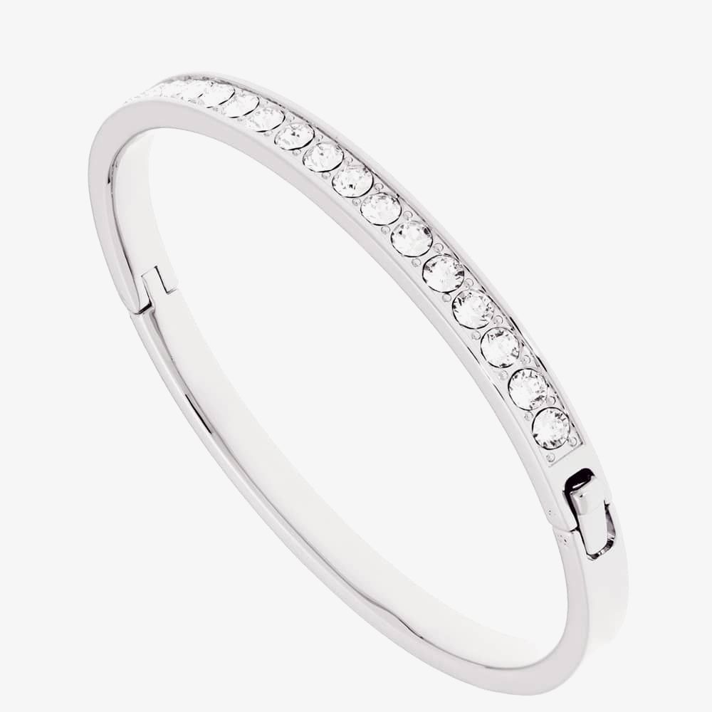 This beautifully hinged bangle is the perfect accessory to take you from day to night. With a stunning silver finish the bangle features clear crystals to add a hint of glamour to any occasion. Wear individually or layer with gold and rose gold bracelets and bangles for an on trend mixed metal style.