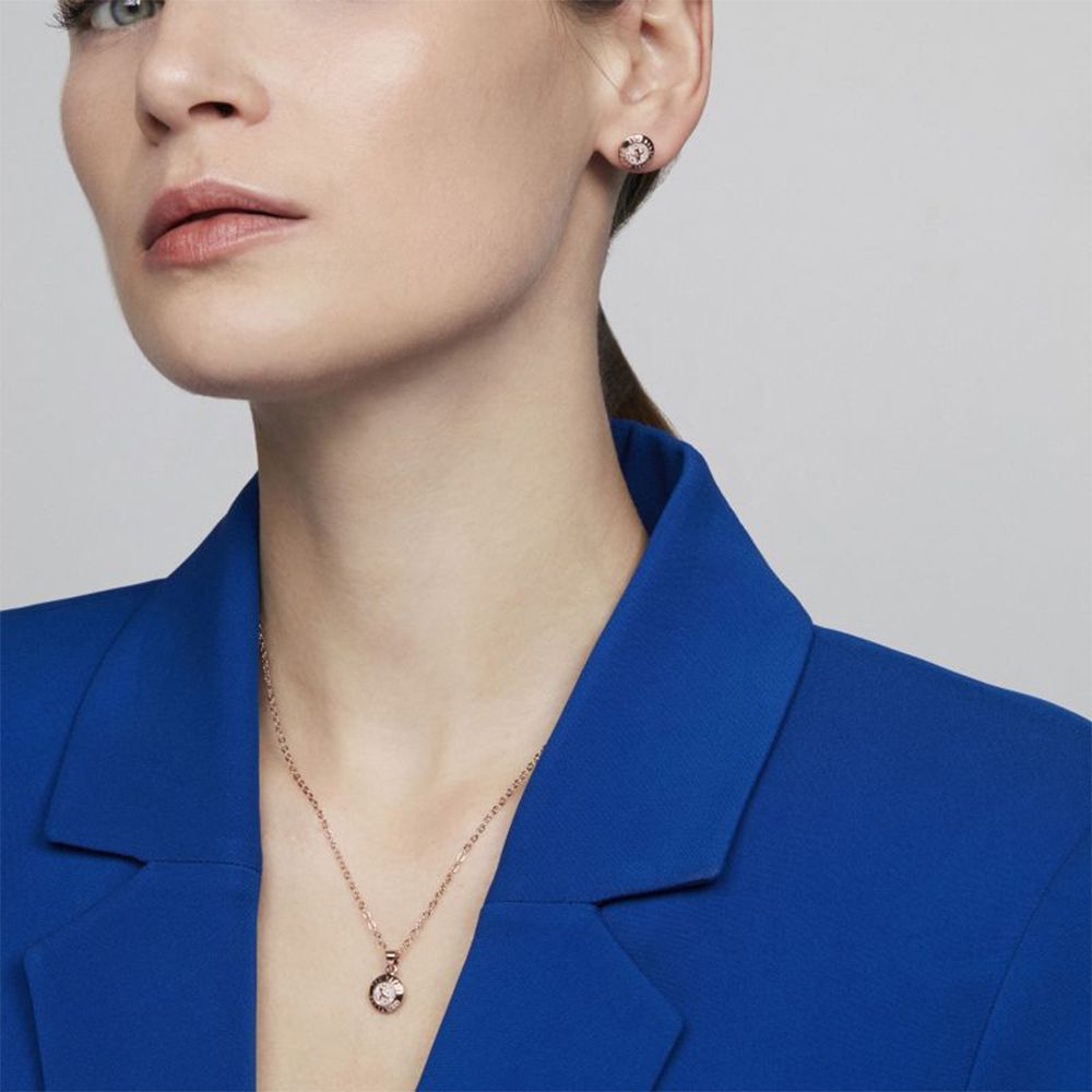 Add a touch of sparkle and fun with the beautiful Emillia Button Jewellery Gift Set. Teds bestselling button design are brought together through a matching pendant and earrings set in this charming gift box, perfect for treating yourself or a loved one. Featuring delicate Ted Baker branded engraving on the button edging, this necklace and earring combination set is sure to earn you lots of complements. Coloured with a rose-gold tone and pink glitter, the 9mm pendant comes complete with a rose gold coloured 42cm trace chain with secure lobster clasp fastening and extender chain, the rose-gold coloured earrings offer butterfly backs and hypo-allergenic stainless steel posts.