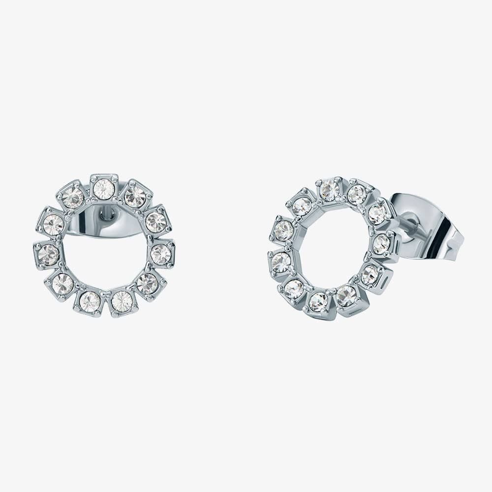 Featuring a halo of expertly encased crystals, these sparkling earrings from the Haliana collection command attention. Enhanced with silver-tone backings that highlight their brilliance, these studs also come with sturdy butterfly backs for added security.