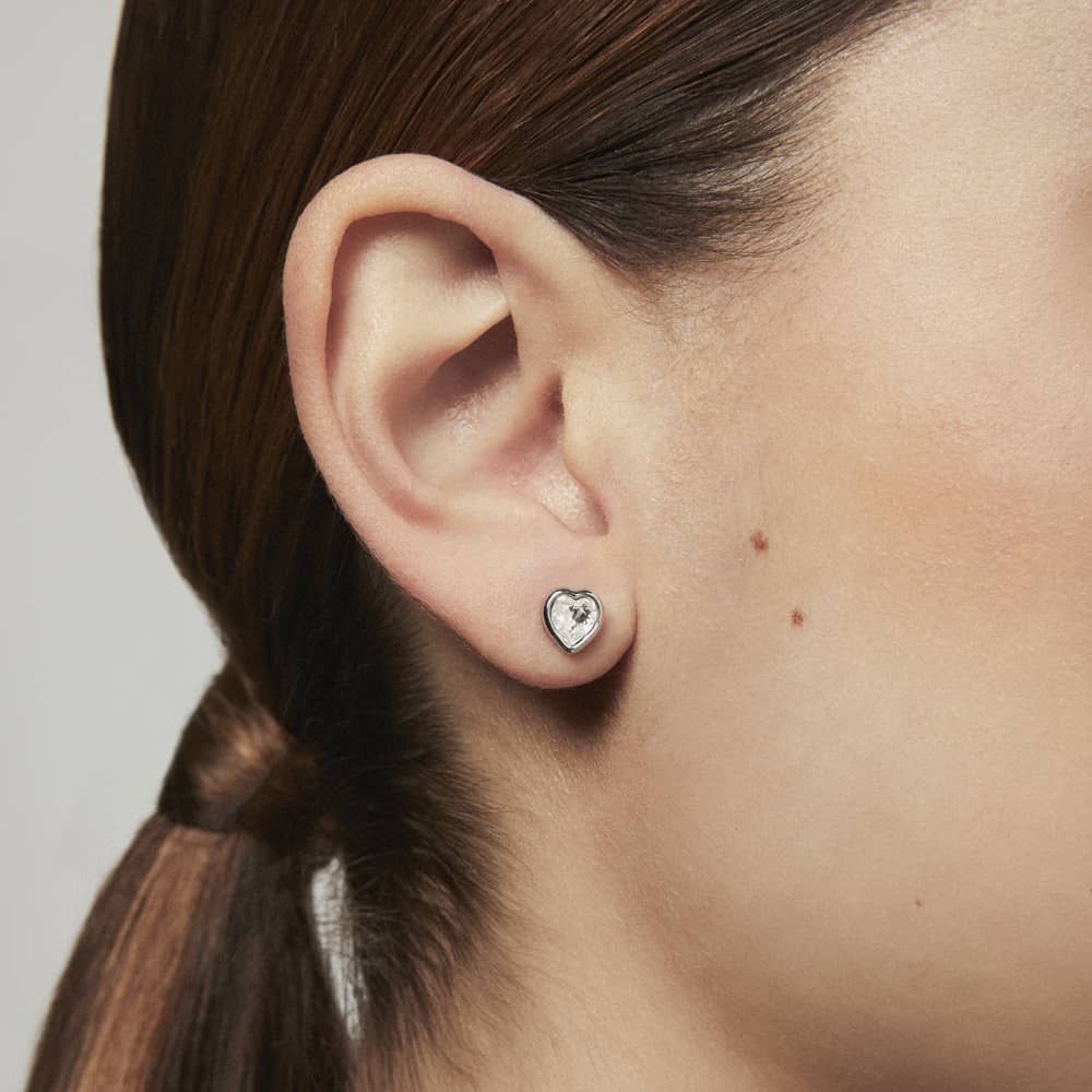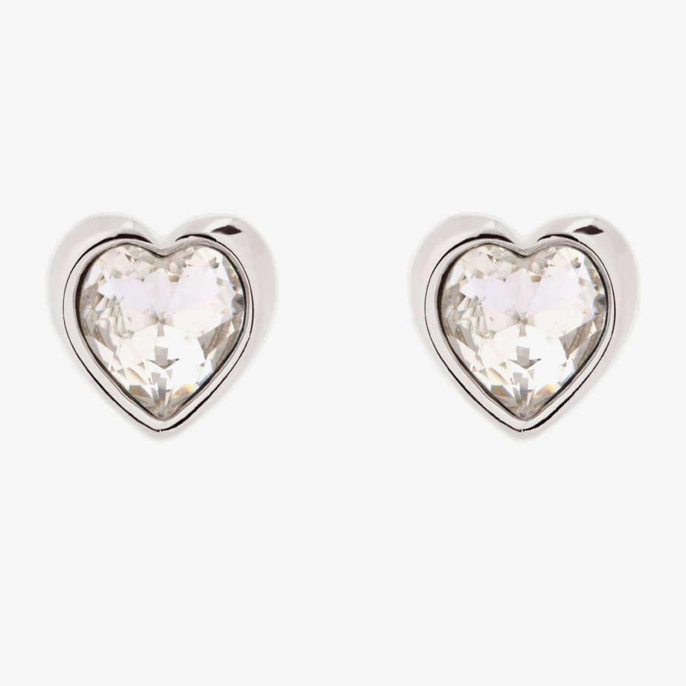 Add a sparkling finish to your everyday outfit with these cute heart shaped studs. The studs feature a clear crystal that is accentuated by a silver finish. Wear individually or pair with matching heart shaped items from the collection to complete your look.