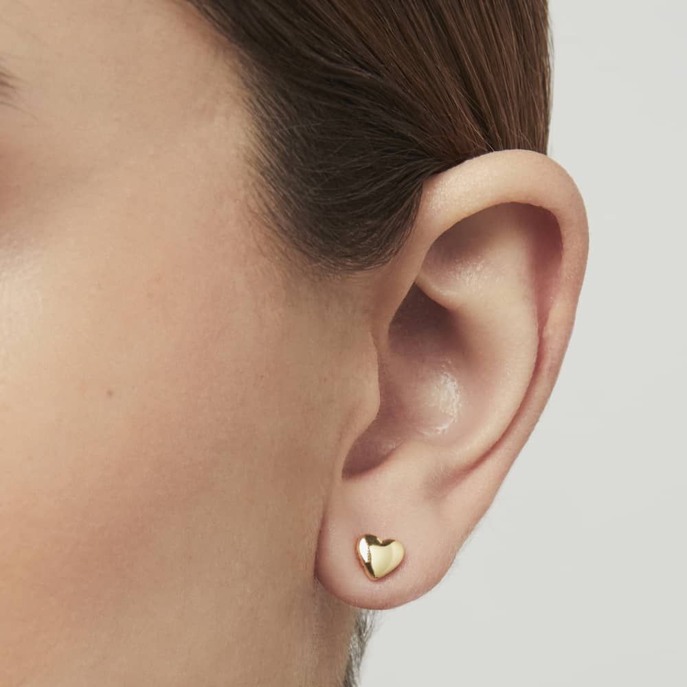 These cute heart shaped stud earrings are perfect for everyday wear. The delicate heart shape features Ted Baker engraving which is accentuated by a shiny gold finish. Wear individually or pair with the matching pendant from the collection to complete your look.