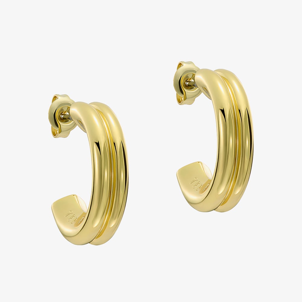 Elegant with a contemporary edge, the Ted Baker Hilya half hoop earrings are crafted from gold-tone plated brass for a warm, polished finish. Featuring a refined stud style with a sleek half hoop design, they bring subtle sophistication to both everyday outfits and evening looks—a versatile essential for any jewellery collection.