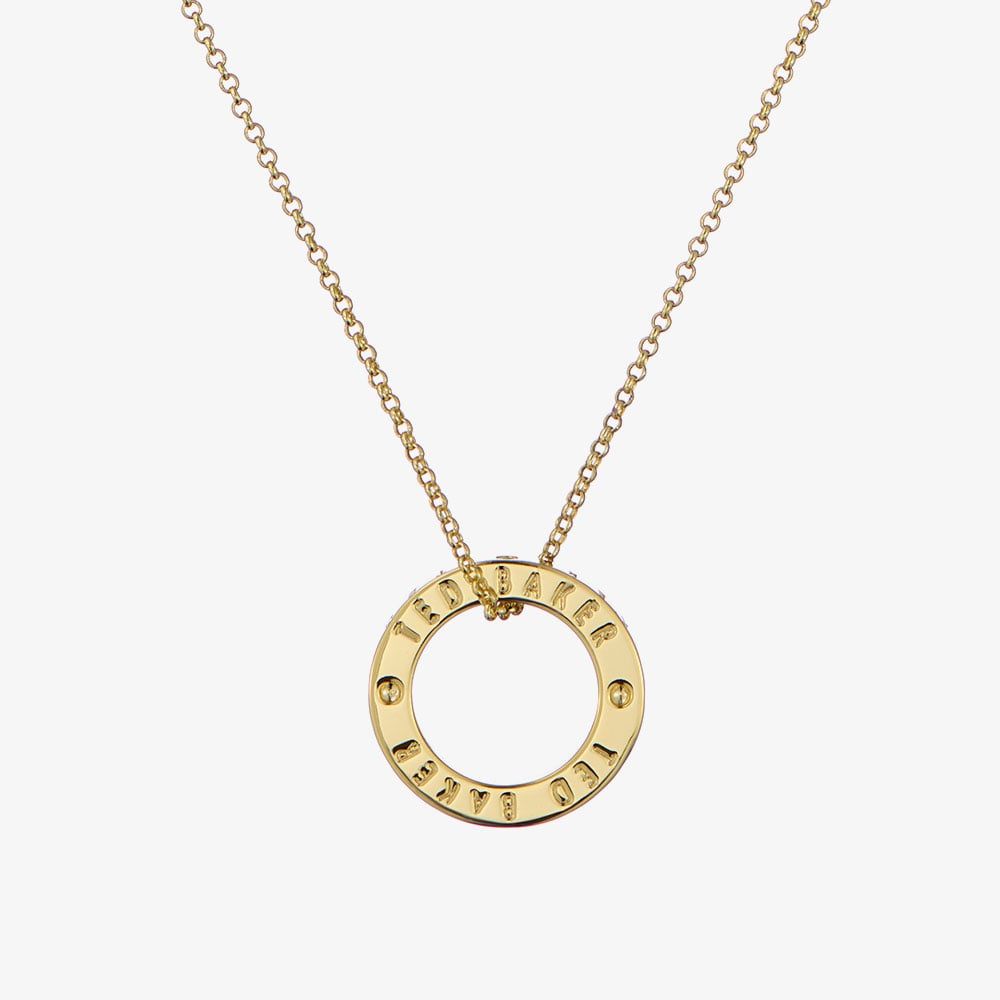 This beautiful Ted Baker Loelle Circle pendant is a stunning addition to any outfit. Crafted from brass with a gold-tone plating, the circle pendant comes complete with the Ted Baker name.