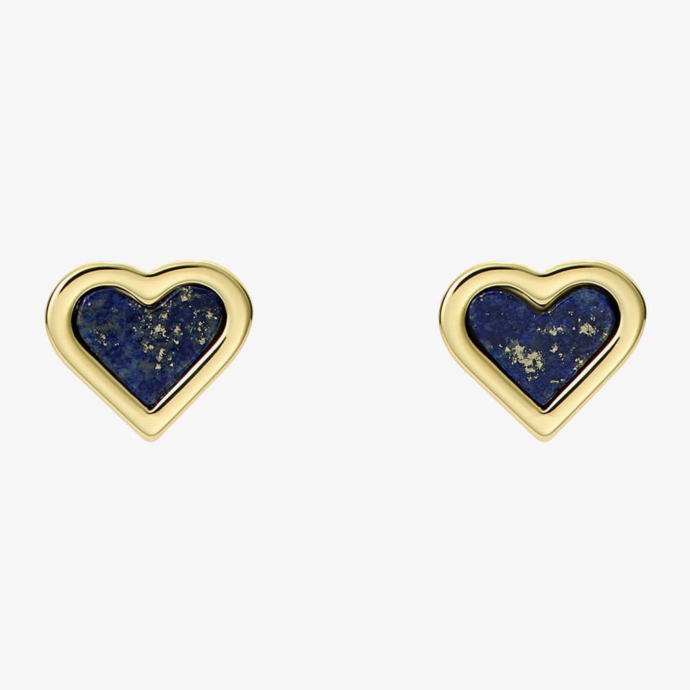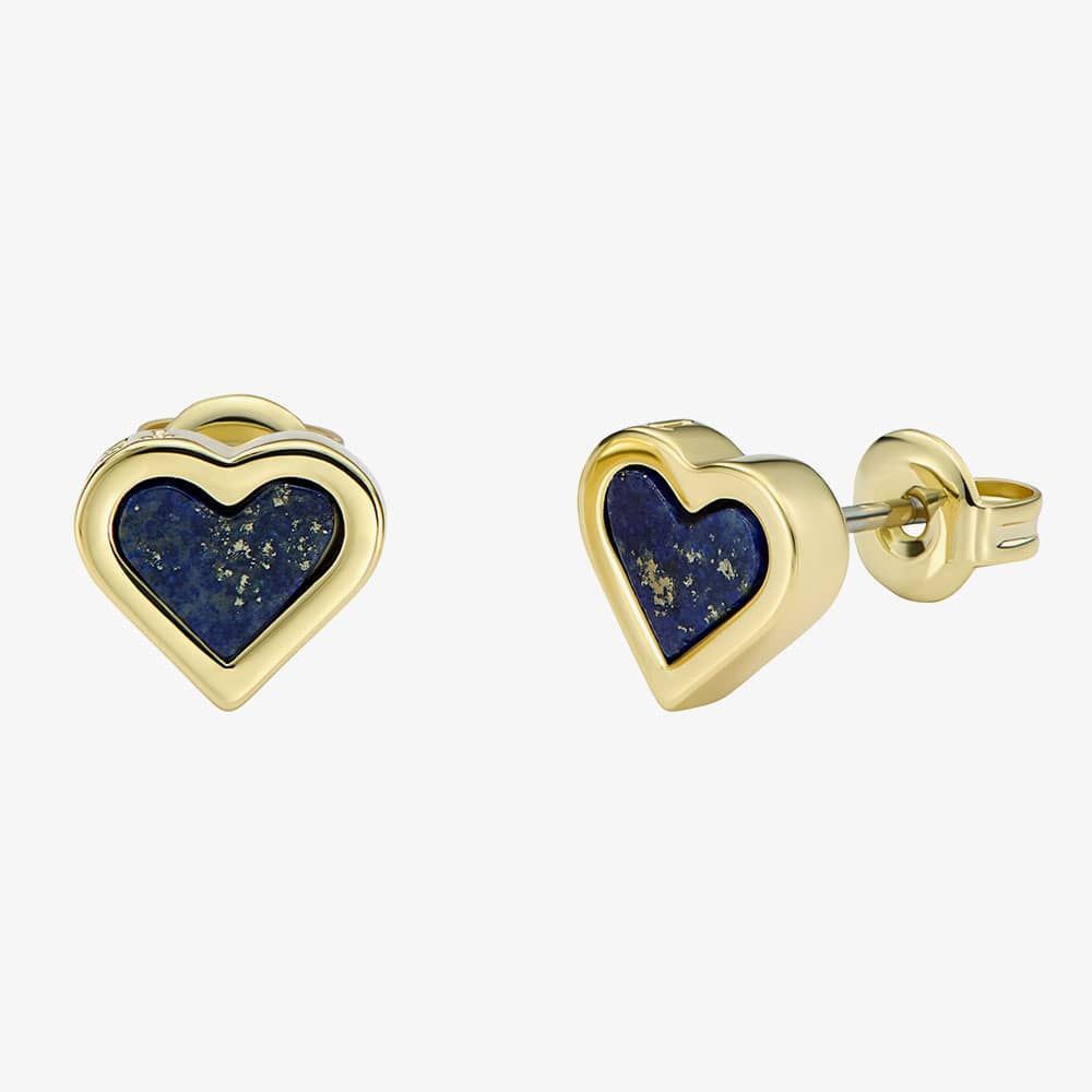 The exquisite Morlia heart earrings showcase heart-shaped Lapis Lazuli stones cradled in elegant gold-toned studs. Finished with secure butterfly backs, these earrings are an essential addition to any outfit.