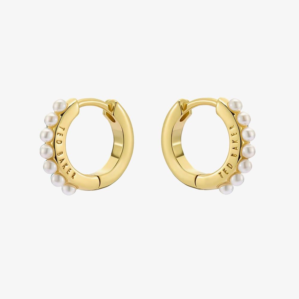 Add a touch of elegance to your ensemble with the Ted Baker Persia Pearl Huggie Earrings. These gold-tone huggie hoops feature luminous faux baroque pearl pendants, offering a timeless and versatile accessory suitable for both daytime and evening wear.