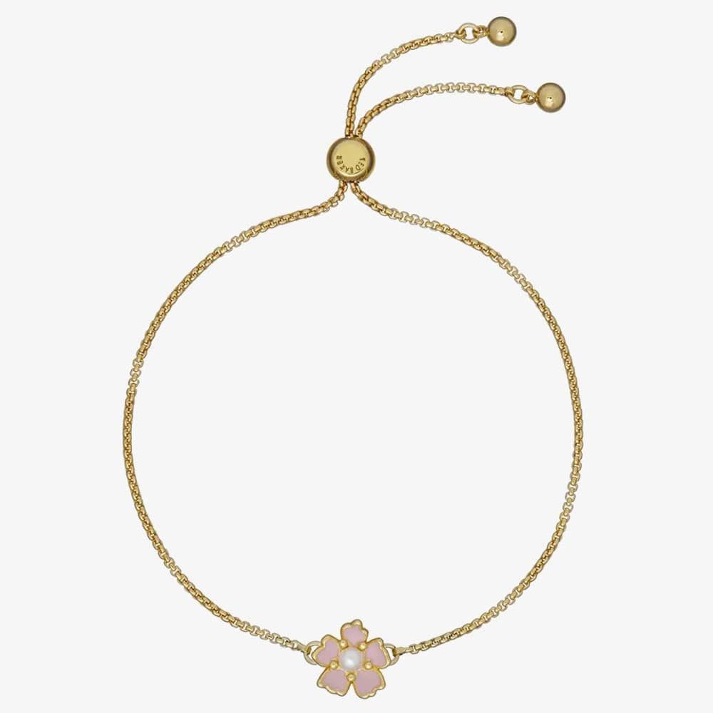 This Ted Baker Petial bracelet is a timeless treasure. Crafted with care, the gold-toned brass chain features a dainty pink enamel-filled flower and a sparkling synthetic pearl. Its adjustable belcher toggle chain adds a touch of elegance.