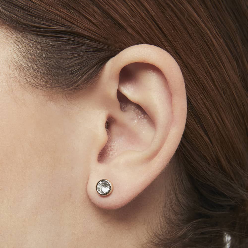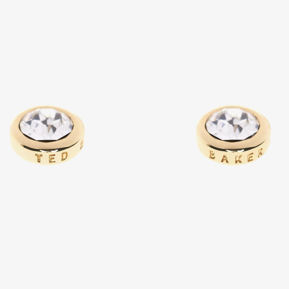 Crafted in a gold finish, these delicate stud earrings are perfect for everyday wear. The studs are set with an iridescent sparkling crystal. Pair with similar items from the collection to complete your look.