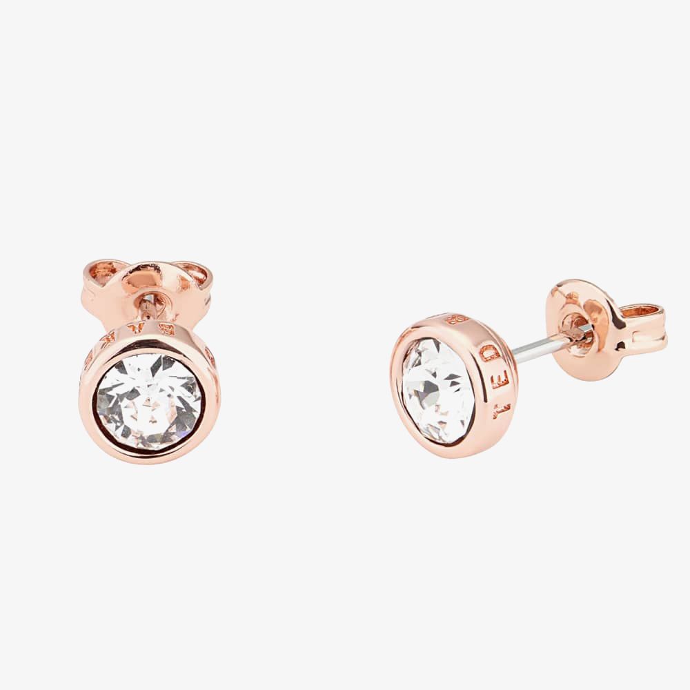 The perfect accessory to take you from day to night, these stunning crystal stud earrings will be sure to make statement. The earrings feature a glistening clear swarovski crystal that is set inside a rose gold finished casing. The casing also features Ted Baker engraving adding a stylish finish. Pair with matching items from the collection to complete your look.