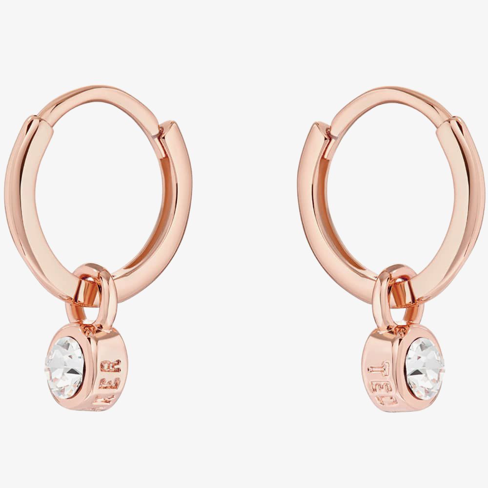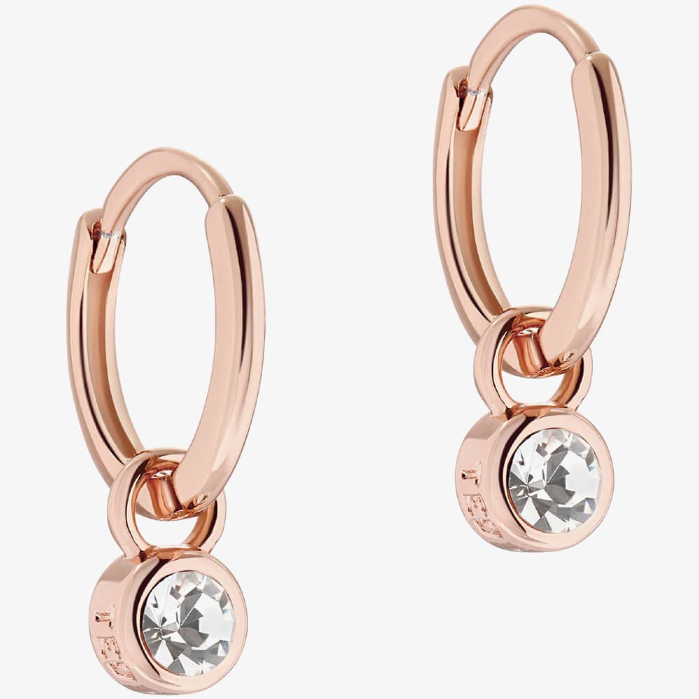 The Ted Baker SINALAA Rose Gold Tone Crystal Huggie Earrings TBJ3028-24-02 are created in rose gold tone plated brass and feature sparkling crystal charms. They have an inside diameter of 9.03mm and are completed with hypo-allergenic posts.