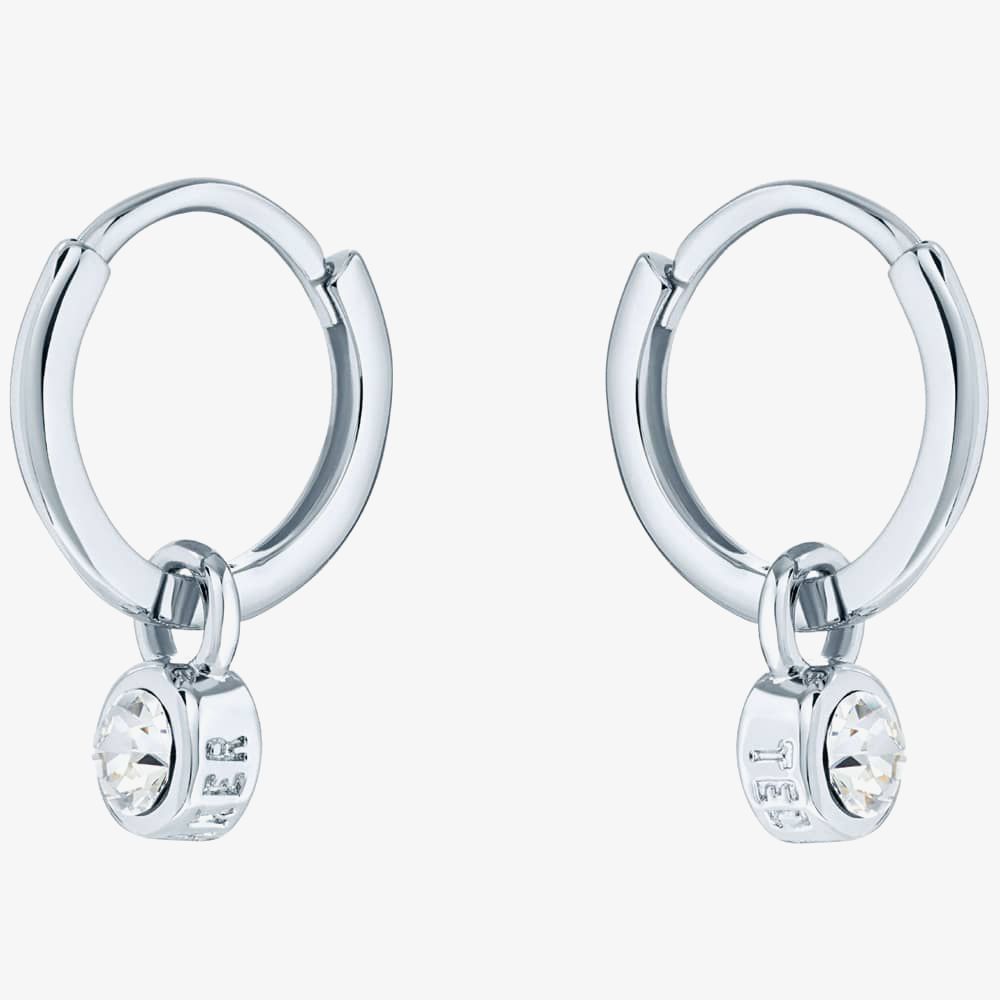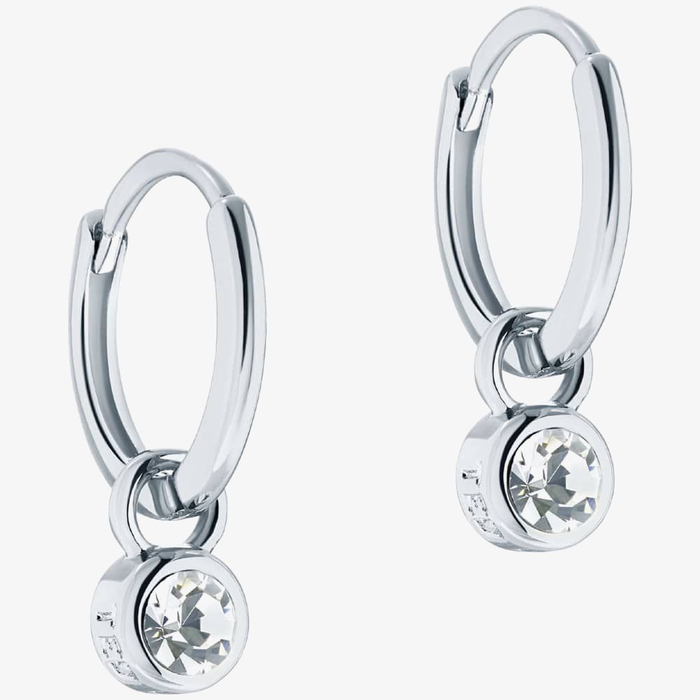 The Ted Baker SINALAA Silver Tone Crystal Huggie Earrings TBJ3028-01-02 are created in silver tone plated brass and feature sparkling crystal charms. They have an inside diameter of 9.03mm and are completed with hypo-allergenic posts.