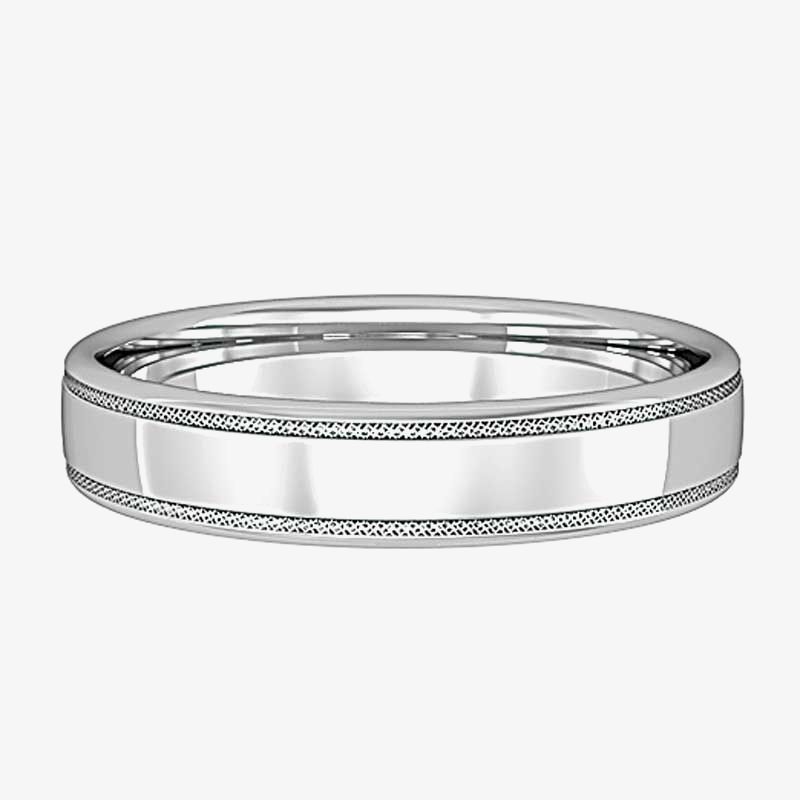 THB Collection bring us this stylish ladies wedding ring ideal for the big day. Forged from 9ct white gold, 4mm in width, with an unusual lattice edge design and court shape, it will make a stylish addition to your ring finger at a reasonable price. Buy with confidence