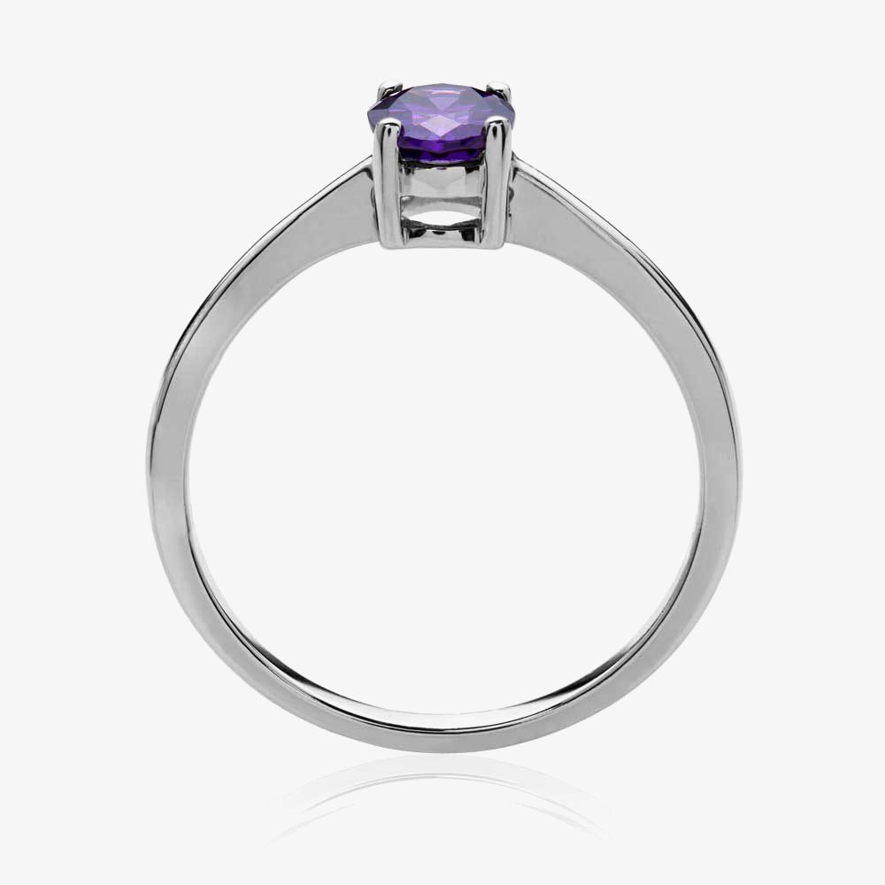 An attractive sterling silver ring in February's birthstone colour, this lustrous sterling silver piece has been expertly crafted to hold an oval faceted cubic zirconia stone in a traditional four claw setting, making this an ideal gift for yourself or a loved one.