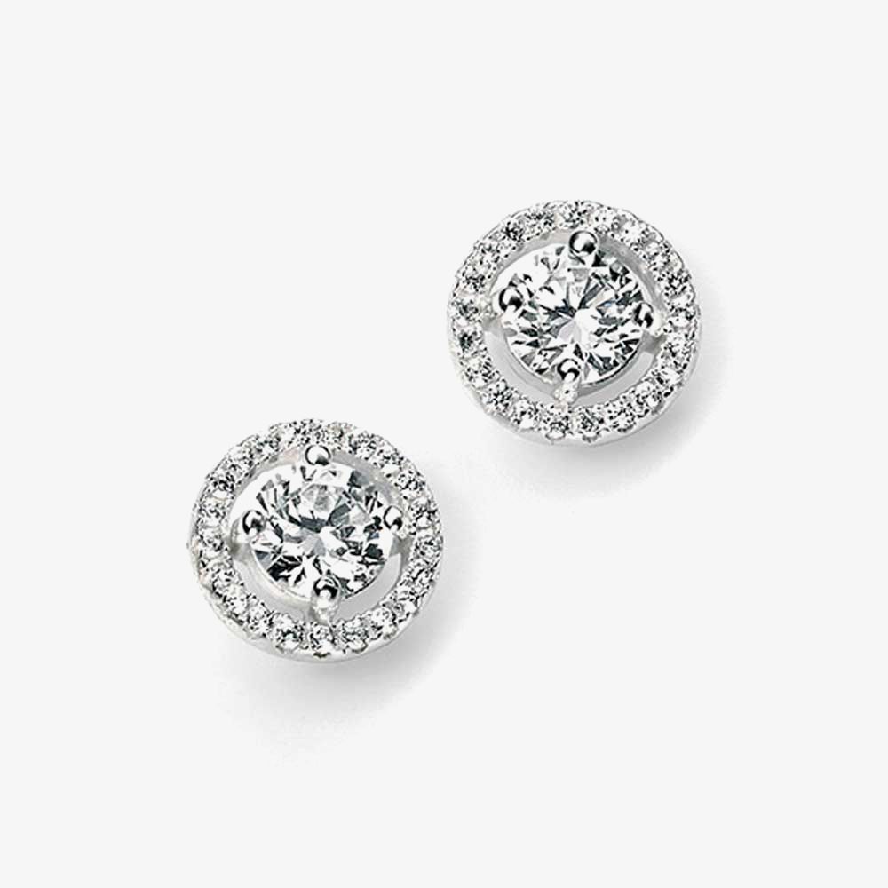 A gorgeous pair of silver stud earrings from the THB Collection. Featuring a four claw setting holding a dazzling clear cubic zirconia centre, with a stone set halo for an extra radiant sparkle. The ideal accessory to bring some glitz and glamour to your outfits for a reasonable price.