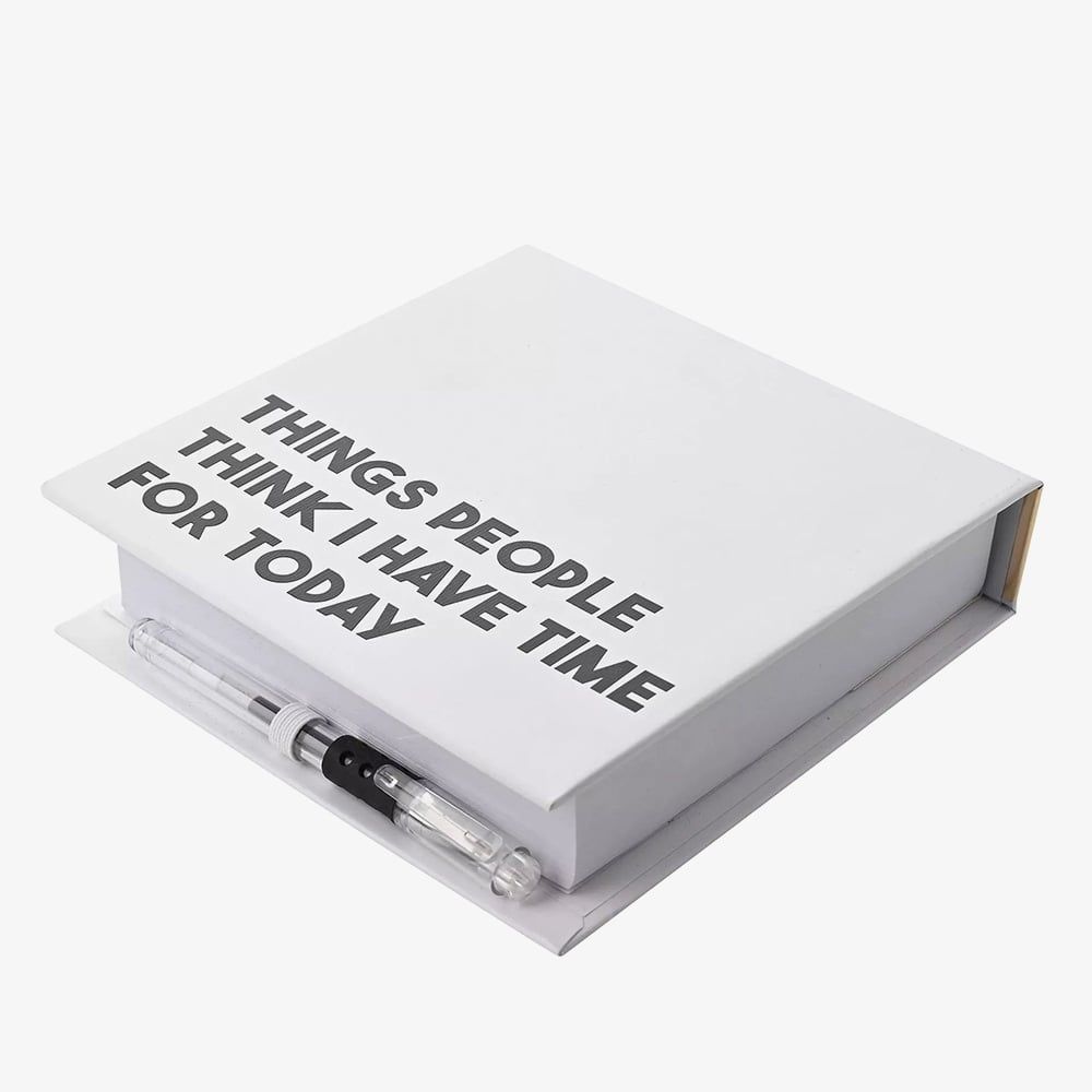 Add a touch of humour to any desk with this Note-Block from Word by NOW OR NEVER STUDIOS®. Featuring bold black lettering and the witty phrase “THINGS PEOPLE THINK I HAVE TIME FOR TODAY,” it’s designed to inject fun and personality into any setting. Comes packaged in a closed box.