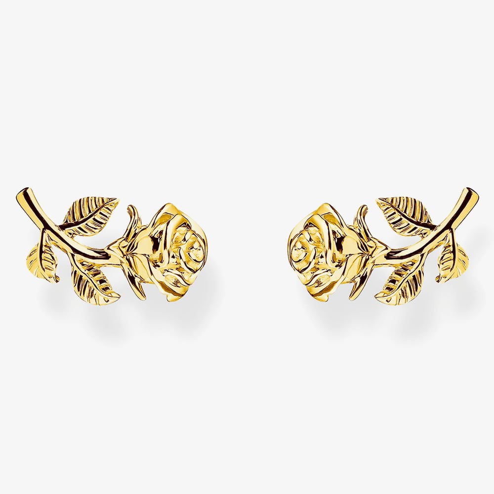 Wear these intricately designed rose ear studs as a true reflection of your individuality. Inspired by Victorian elegance, they are crafted from recycled silver with a luxurious 18ct gold plating. The dramatic rose design is beautifully accentuated with fine lines, mirroring the delicate details of its leaves. Push back clasp for secure fitting.