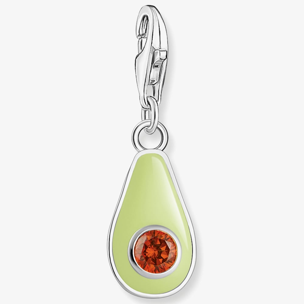 Show your love for avocados with this detailed charm, featuring a sparkling amaretto zirconia stone as a stylized pit. Enamel in various shades of green adds depth and texture to the design. Easily attach it to a charm necklace or bracelet with the lobster clasp for a fresh and fun accessory.