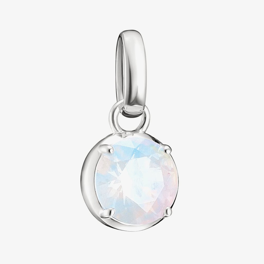 This shimmering birthstone charm by Thomas Sabo is the perfect gift for a June birthday. Crafted in sterling silver and set with a round opal effect glass stone, this pendant charm has an open work back with Jun engraving for a sweet sentiment. The eyelet allows for easy attachment to Thomas Sabo Charm Club Connect bracelets and necklaces or can be worn as a pendant on a fine chain. (Not compatible with Original Charm Club).