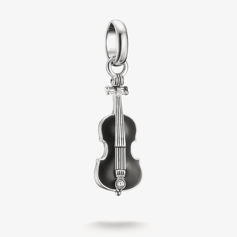 The Thomas Sabo Charm Club Connect Wednesday Cello Charm captures the iconic cello played by Wednesday Addams, crafted from recycled sterling silver with a blackened finish, with black enamel detailing. A sparkling white cubic zirconia at the base of the cello adds a touch of elegance. Perfect for fans of Wednesday and gothic style, this charm is compatible with Charm Club Connect jewellery only, making it a unique and thoughtful gift.