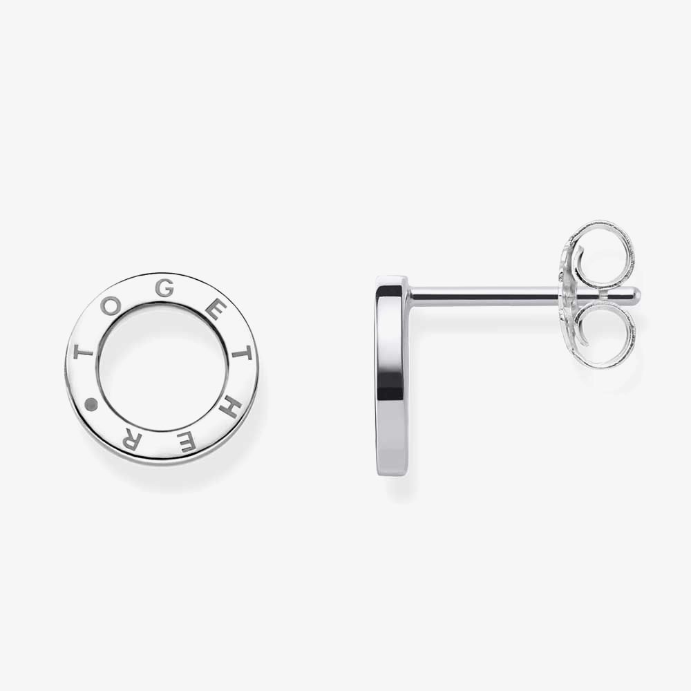 Connected forever: These sumptuous sterling silver open work circle ear studs with the “Together” engraving are a symbol of eternal love and make a wonderful gift for your loved one.