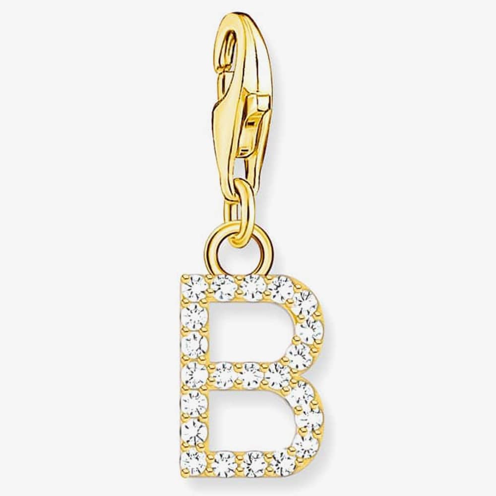 The THOMAS SABO Gold Plated Letter B Charmista dangle charm is made from sterling silver and set with white cubic zirconia.