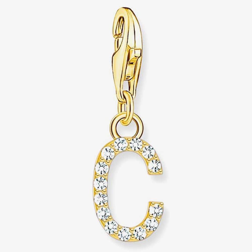 The THOMAS SABO Gold Plated Letter C Charmista dangle charm is made from sterling silver and set with white cubic zirconia.