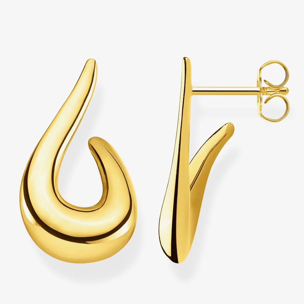 Clean, modern and chic - these beautiful tear drop shaped earrings will add a touch of elegance to any occasion. Crafted in 18ct gold plated, the earrings take inspiration from the iconic THOMAS SABO designs of the 90s. The earrings offer a strong statement finish to any outfit thanks to the clarity of material and form.