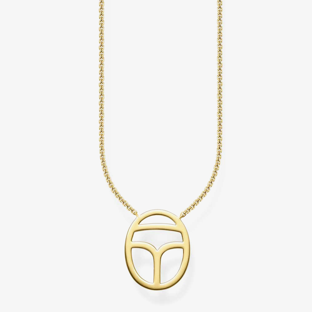 Introducing this glamorous Egyptian inspired jewellery piece from THOMAS SABO, perfect for adorning your outfits with, day or night. Dropping stylishly from an elegant chain is the gorgeous gold plated pendant, expertly crafted in an open work scarab beetle design. Scarab amulets were treasured by the Egyptians as ancient art, with this necklace being a beautiful tribute.