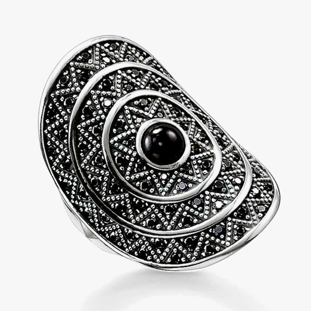 THOMAS SABO and the Glam and Soul collection bring us this stunning fashion ring, sure to bring standout style to any outfit it adorns. Exquisitely crafted from sterling silver it features an intricate zigzag design, studded with shimmery black cubic zirconia and an alluring onyx centre stone. Buy with confidence