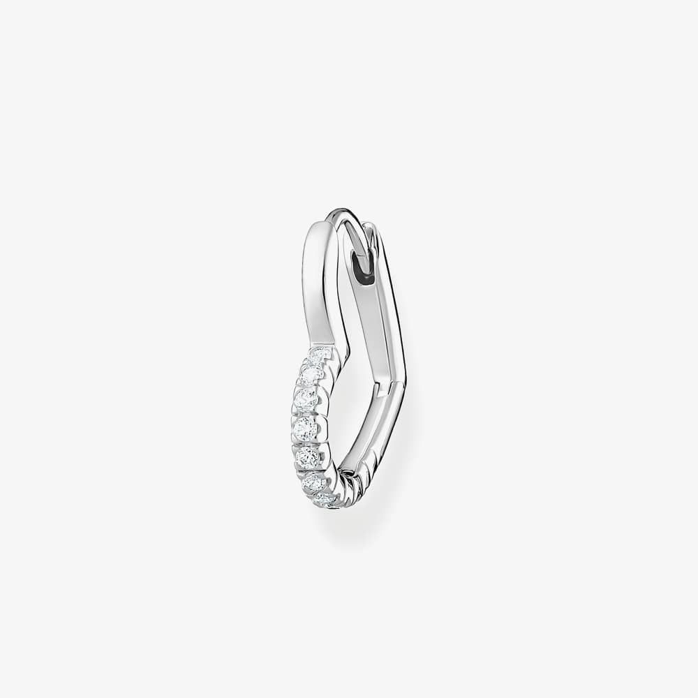 THOMAS SABO Ladies Single Silver Stone Set Heart Hoop Earring CR693-051-14 is made from sterling silver and set with white cubic zirconia.