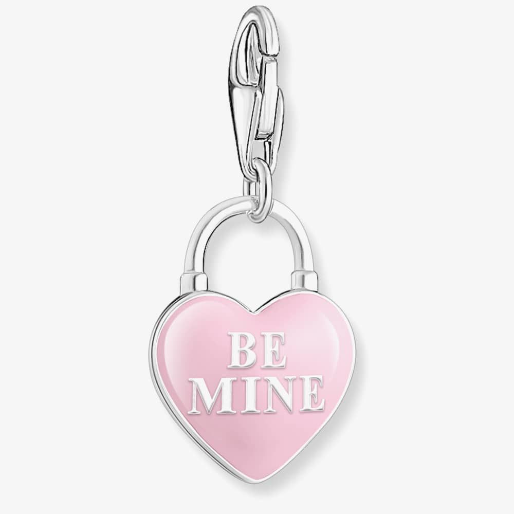 Crafted from recycled silver, this charm features a three-dimensional design, it takes the form of a heart-shaped lock with the endearing inscription "BE MINE." The romantic allure is heightened by the hand-painted pinkish-cold enamel. On the reverse side, a stylised keyhole is adorned with a white zirconia stone.