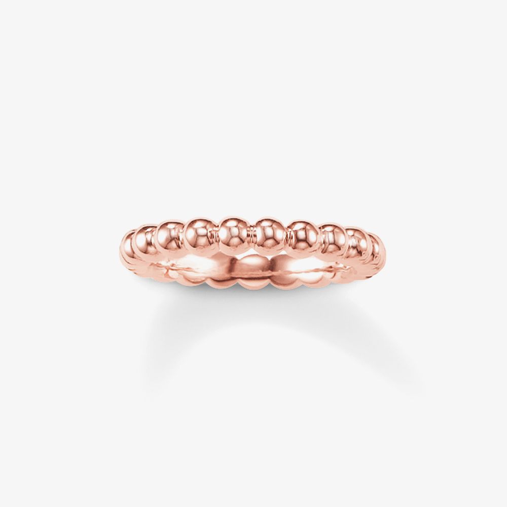 THOMAS SABO have created this super stylish ladies bead ring, ideal for stacking against other ring or on its own, it makes a great accessory for any outfit. Set in rose gold plated silver in this attractive bead design, this is a great fashion statement and is a perfect gift for a loved one, buy with confidence.