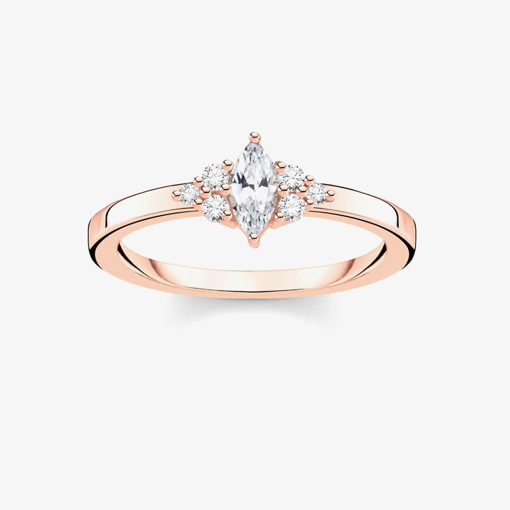 Add a sparkling finish to your everyday look with this stunning vintage style ring from the Charming Collection. Created in sterling silver with a glistening rose gold plating, the ring is set with sparkling cubic zirconia stones in a vintage marquise shape. Wear the ring individually or pair with similar items from the collection for the perfect gift.