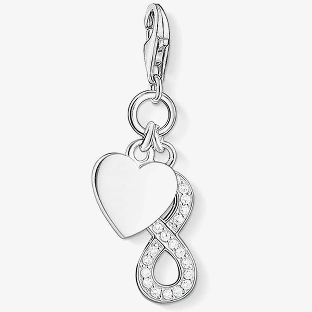 New from the THOMAS SABO Charm Club Collection is this adorable sterling silver charm. Featuring a stylish heart and infinity symbol with Cubic Zirconia detailing, this beautiful charm is sure to make a welcoming addition to any THOMAS SABO bracelet.