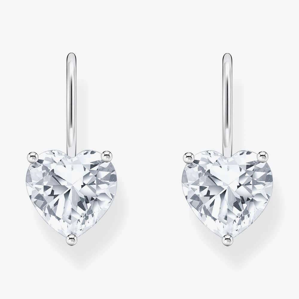 These stunning earrings boast a simple yet elegant look, perfect for everyday wear. Featuring a comfortable silver hook, they are crafted from recycled silver and showcase a striking large heart shaped cubic zirconia stone, adding a touch of brilliance to any outfit.