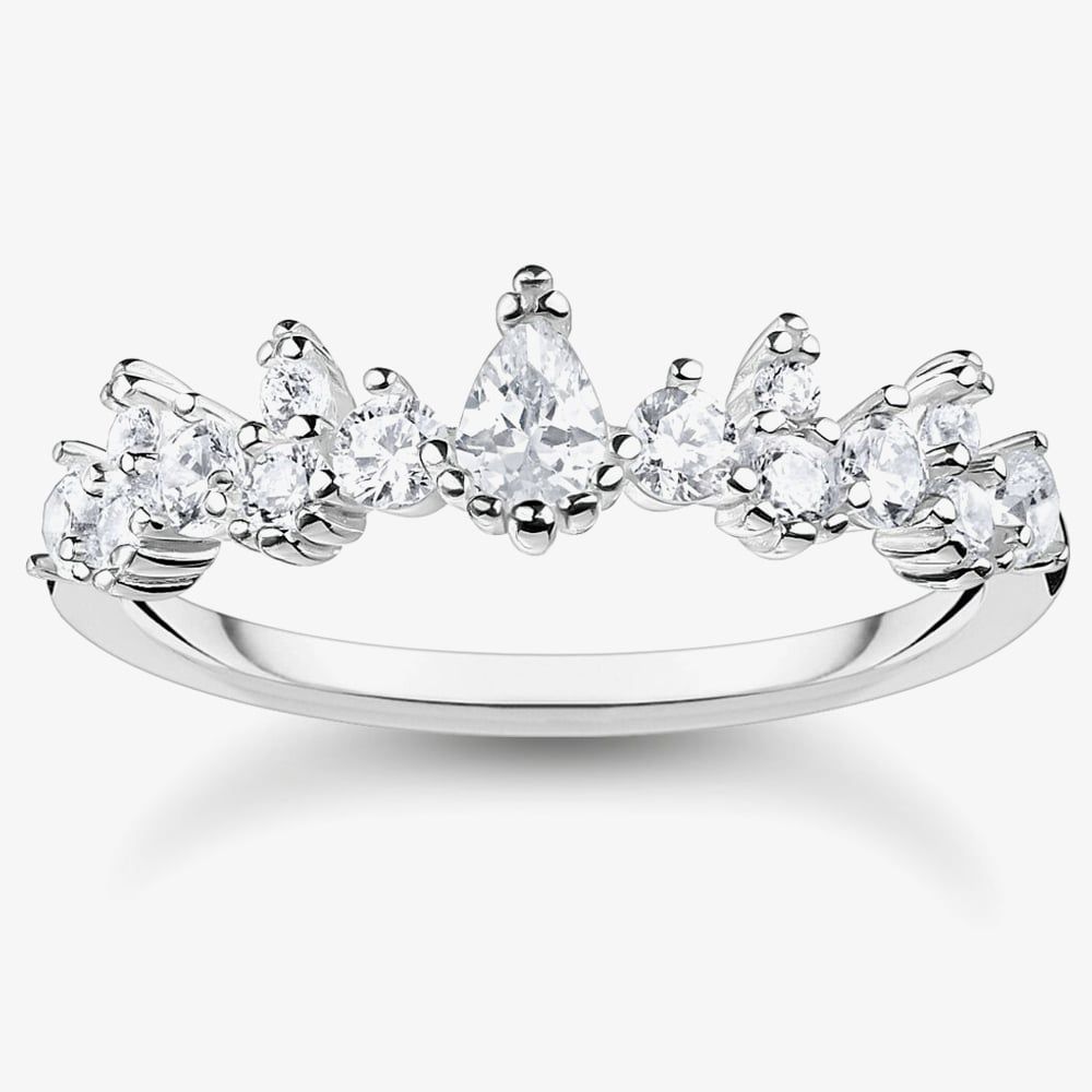 This eye-catching dress ring has been created in sterling silver & features pear & round cut sparkling white cubic zirconia stones which catch the light beautifully. Ideal for layering & combining with other THOMAS SABO rings to create your own unique look.