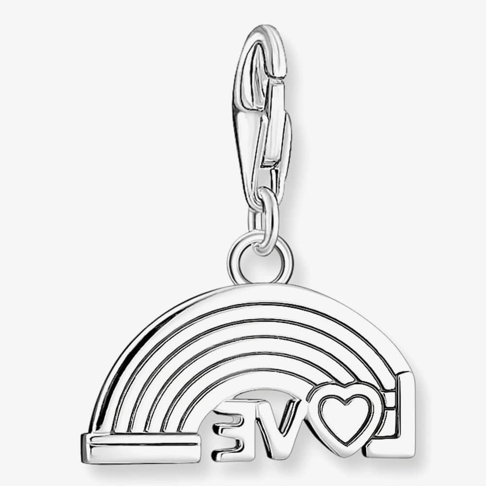 An eye-catching charm club charm which is created in sterling silver & features a rainbow design set with multi-coloured enamel & multi-coloured glass-ceramic, synthetic corundum & cubic zirconia stones. This charm also has the wording LOVE with a heart shape sparkling white cubic zirconia stone. This charm is completed with a lobster clasp fastening so can be attached to Charm Club bracelets or necklaces to suit your style.