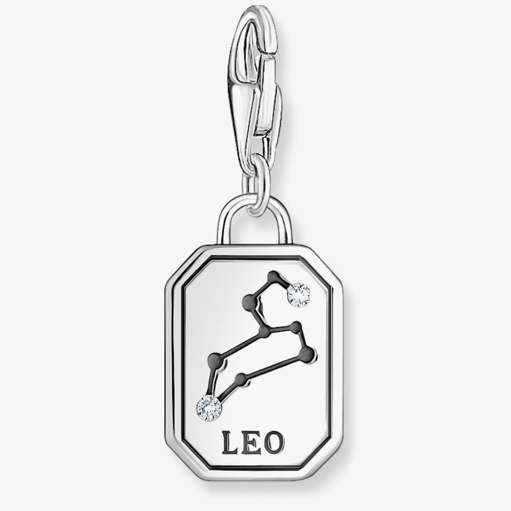 This octagonal-shaped charm is crafted from recycled silver with a slightly blackened finish, this exquisite charm features the iconic Leo zodiac sign adorned with small, sparkling white zirconia stones. Perfect for adding a touch of celestial elegance to your charm bracelet or necklace.