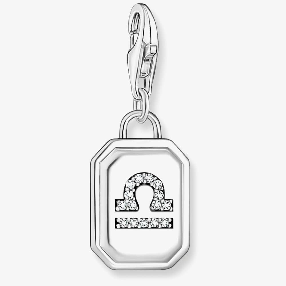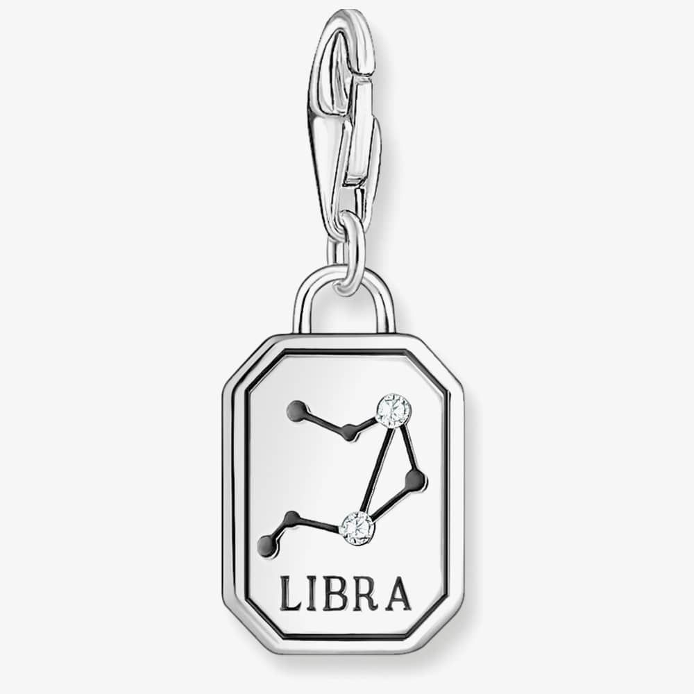 This octagonal-shaped charm is crafted from recycled silver with a slightly blackened finish, this exquisite charm features the iconic Libra zodiac sign adorned with small, sparkling white zirconia stones. Perfect for adding a touch of celestial elegance to your charm bracelet or necklace.