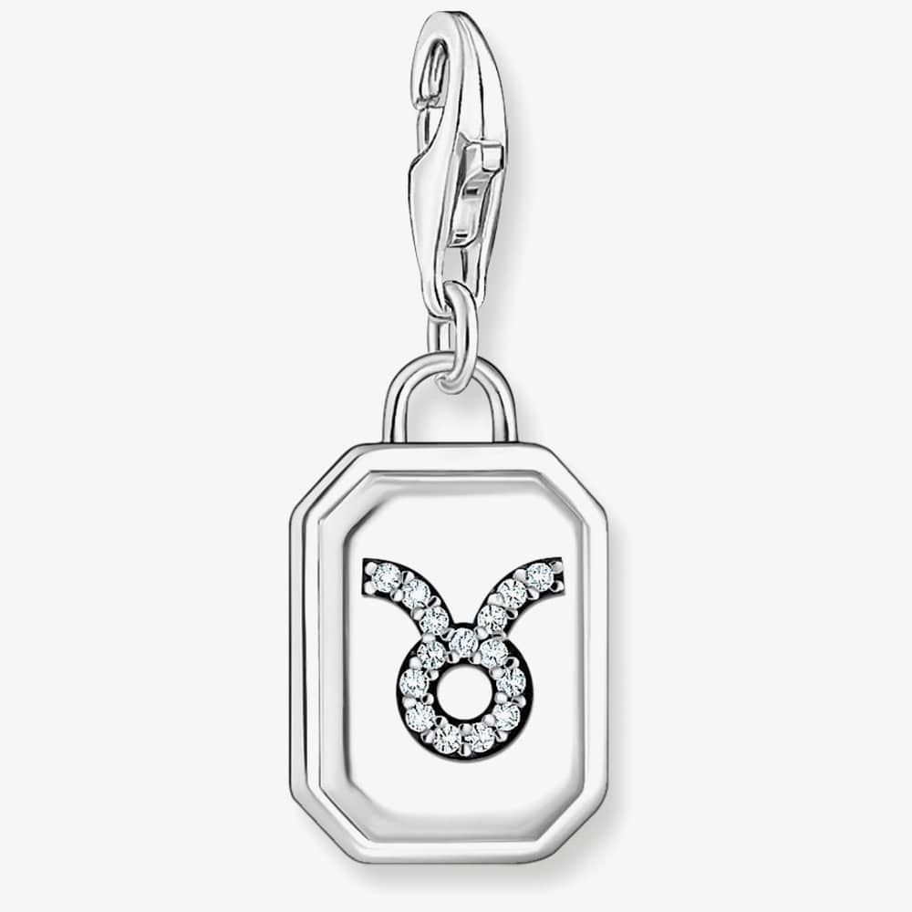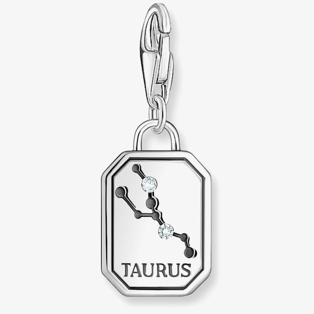 This octagonal-shaped charm is crafted from recycled silver with a slightly blackened finish, this exquisite charm features the iconic Taurus zodiac sign adorned with small, sparkling white zirconia stones. Perfect for adding a touch of celestial elegance to your charm bracelet or necklace.