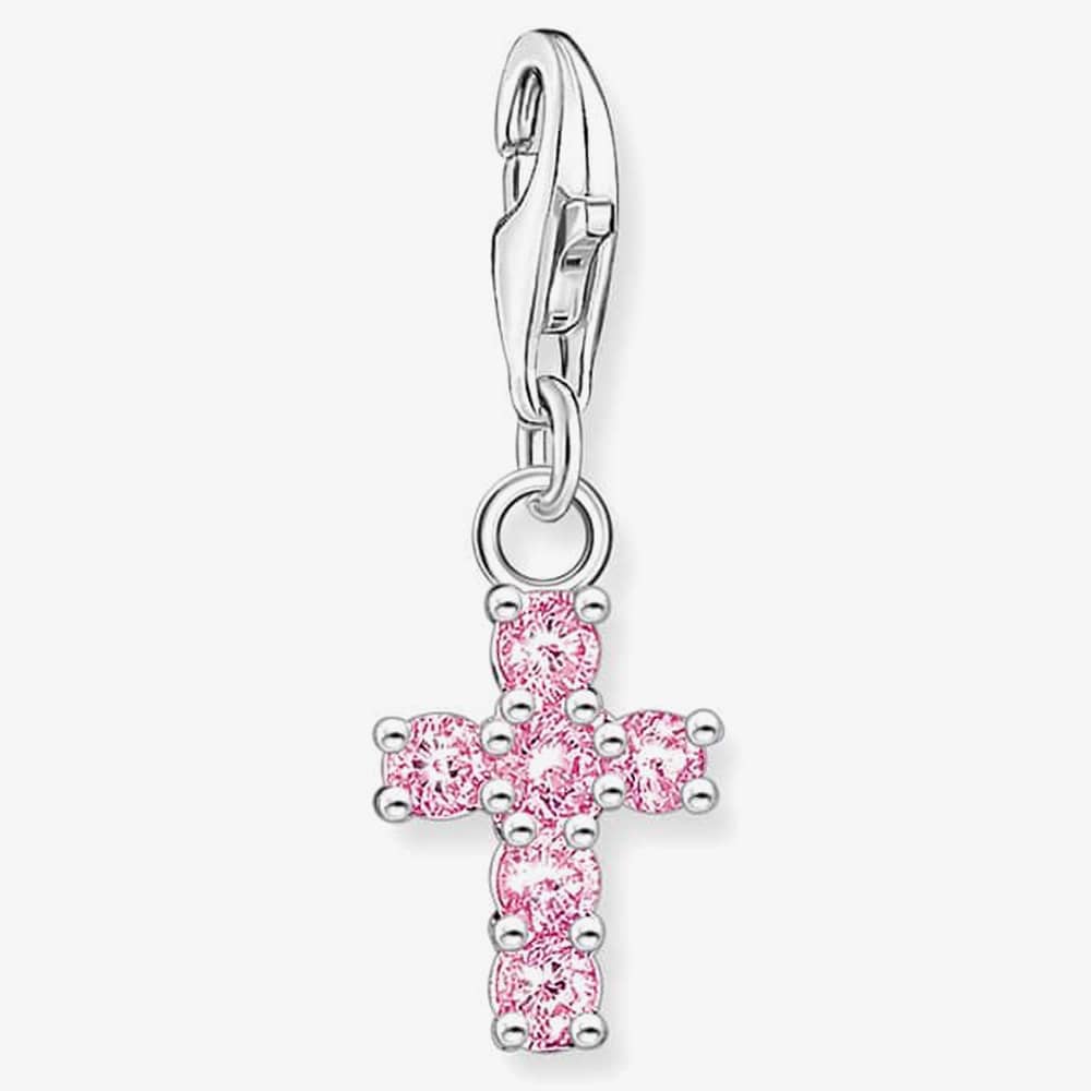 The THOMAS SABO Charmista dangle charm is delicately crafted from sterling silver. The cross pendant features pink round-cut cubic zirconia stones set in a four-claw setting.