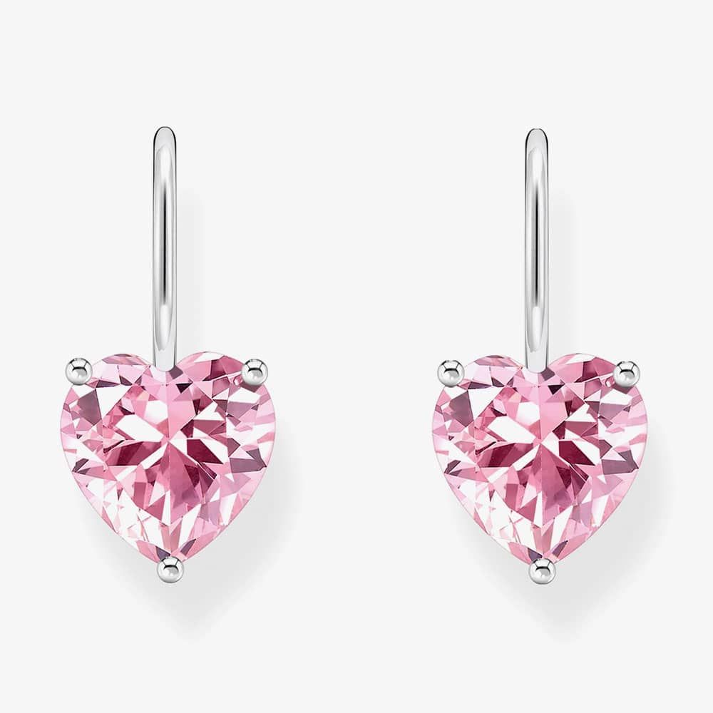 These stunning earrings boast a simple yet elegant look, perfect for everyday wear. Featuring a comfortable silver hook, they are crafted from recycled silver and showcase a striking large pink heart shaped cubic zirconia stone, adding a touch of brilliance to any outfit.