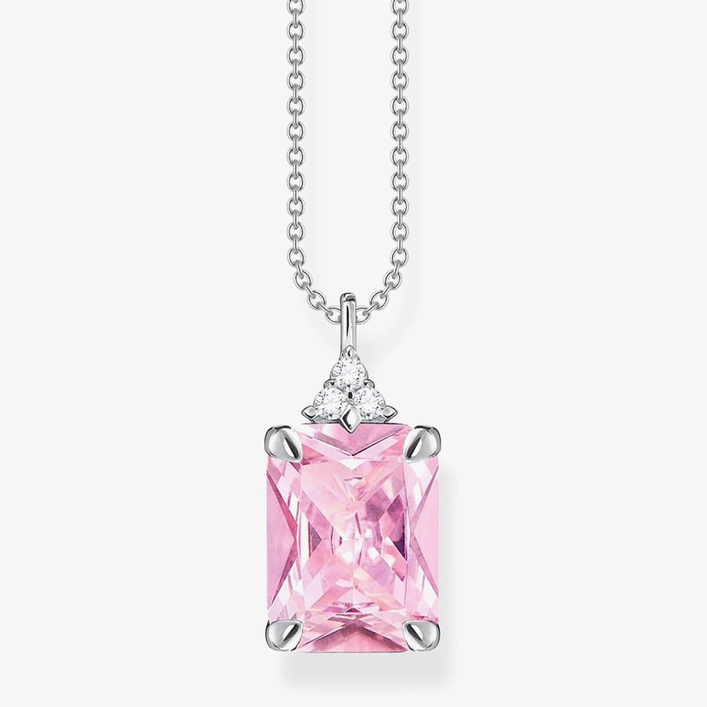 This timeless necklace has been created in sterling silver & features a sparkling octagon-cut pink cubic zirconia stone & a trio of white cubic zirconia stones set above. This pendant is completed with a belcher link chain with a lobster clasp fastening which is adjustable 40-45 cm.