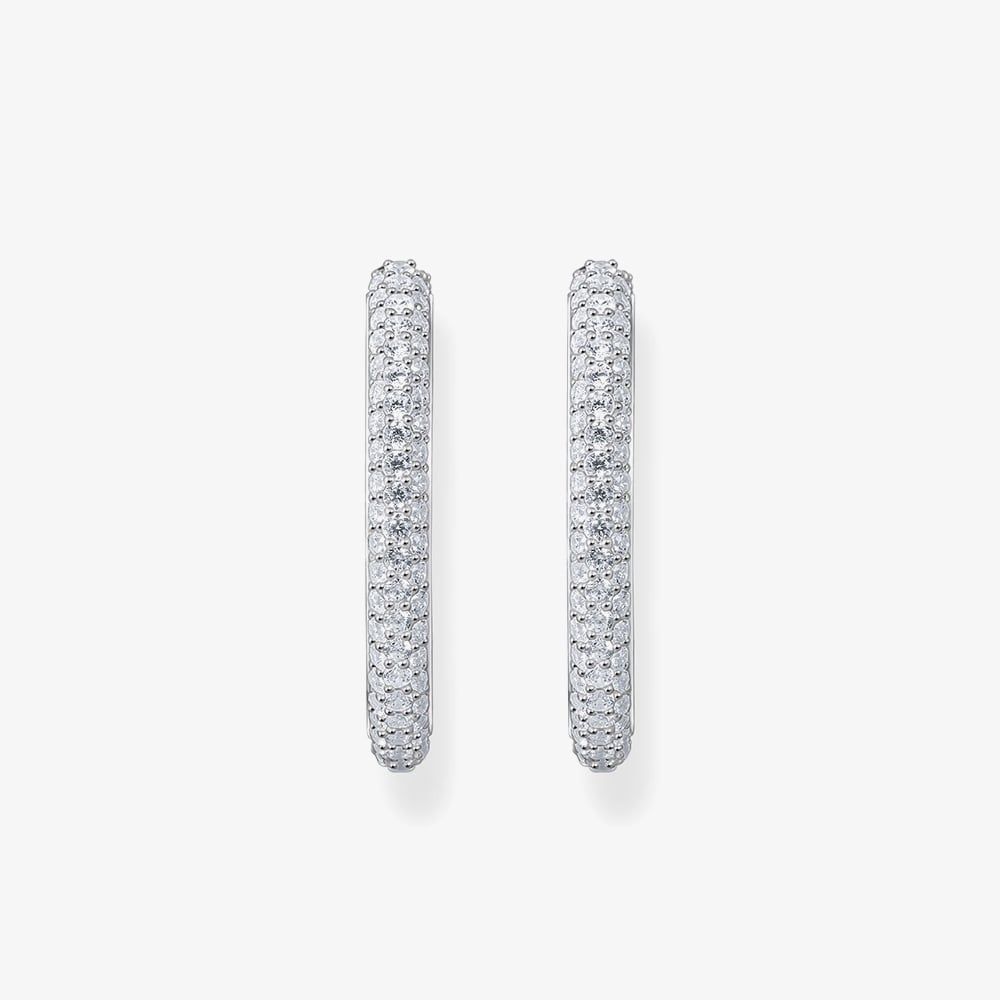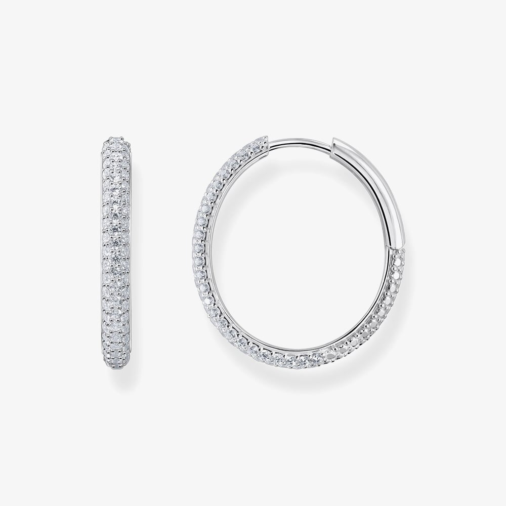 These large, slender hoop earrings blend elegance and sophistication with a contemporary touch. Crafted from recycled silver and adorned with delicate white zirconia pavé, they embody the true essence of the THOMAS SABO brand. Style and pair these versatile hoops to your preference, and make them a standout piece in your jewellery collection.