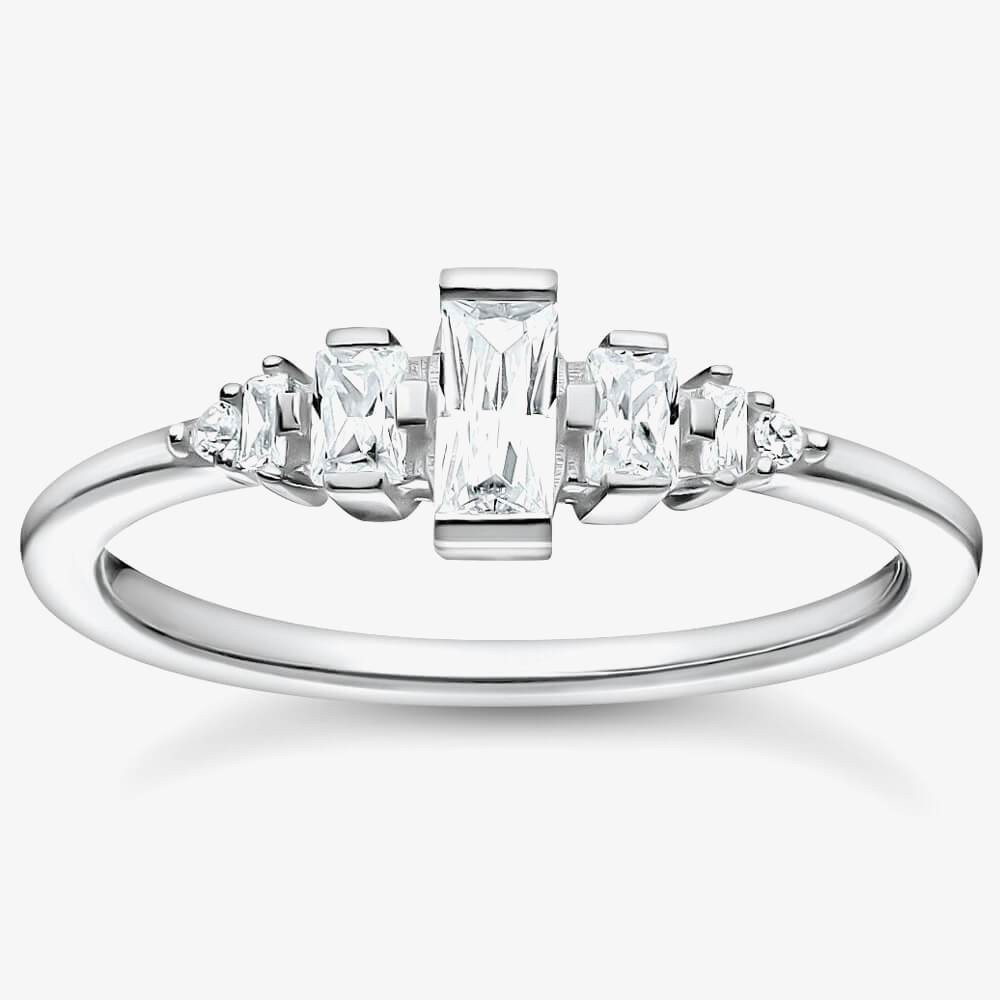 This Sterling Silver ring is bought to us by THOMAS SABO. Featuring sparkling white cubic zirconia stones. Wear individually or combine with other rings to create an en-vogue stacking look.