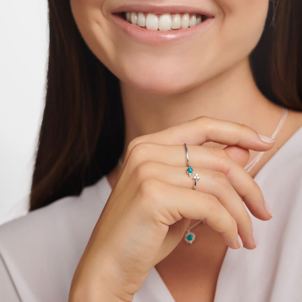 This stunning open ring is bought to us by THOMAS SABO. Created in Sterling Silver and featuring a striking simulated turquoise with sparkling white cubic zirconia.