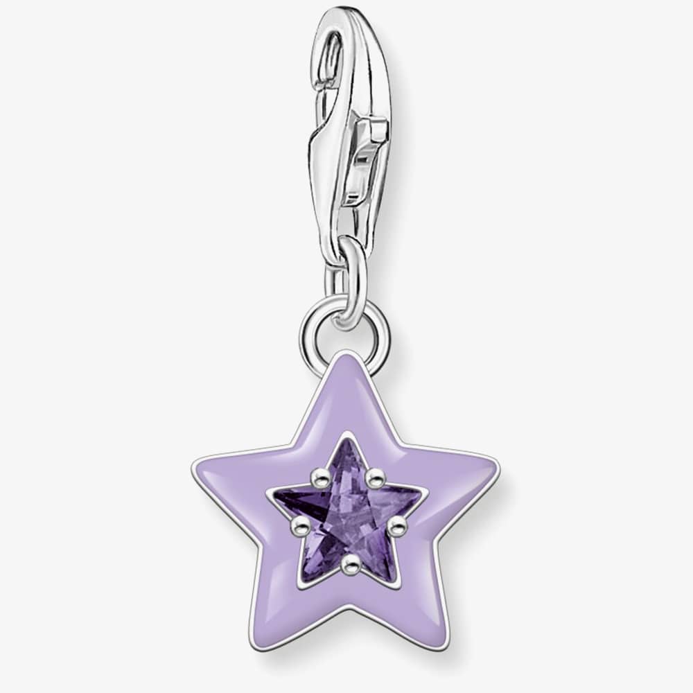 This 925 Sterling silver pendant takes the form of a three-dimensional star and boasts a radiant amethyst-coloured zirconia stone at its centre, shaped like a star. Star-shaped cut-outs on the back add an extra sparkle, and hand-painted violet cold enamel provides an enchanting luminescence. With its snap hook, you can attach this charm to any Charm Club necklaces and bracelets.